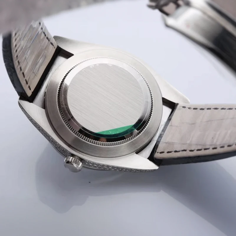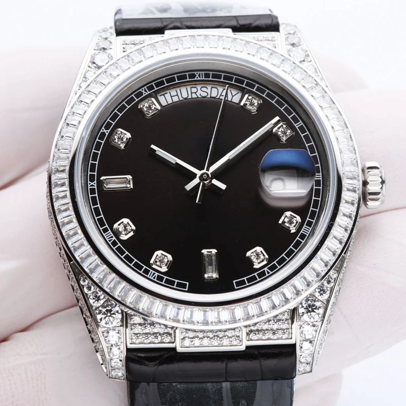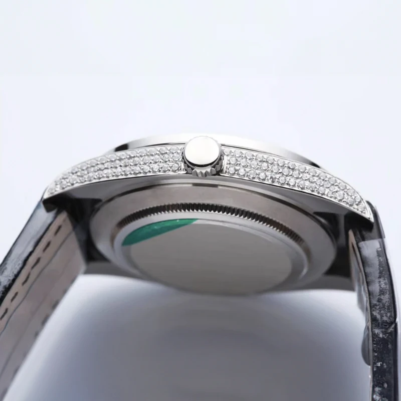 New High-quality Stylish Diamond-encrusted Moissanite Mechanical Watchblack alligator Leather Strap Automatic Waterproof Watches